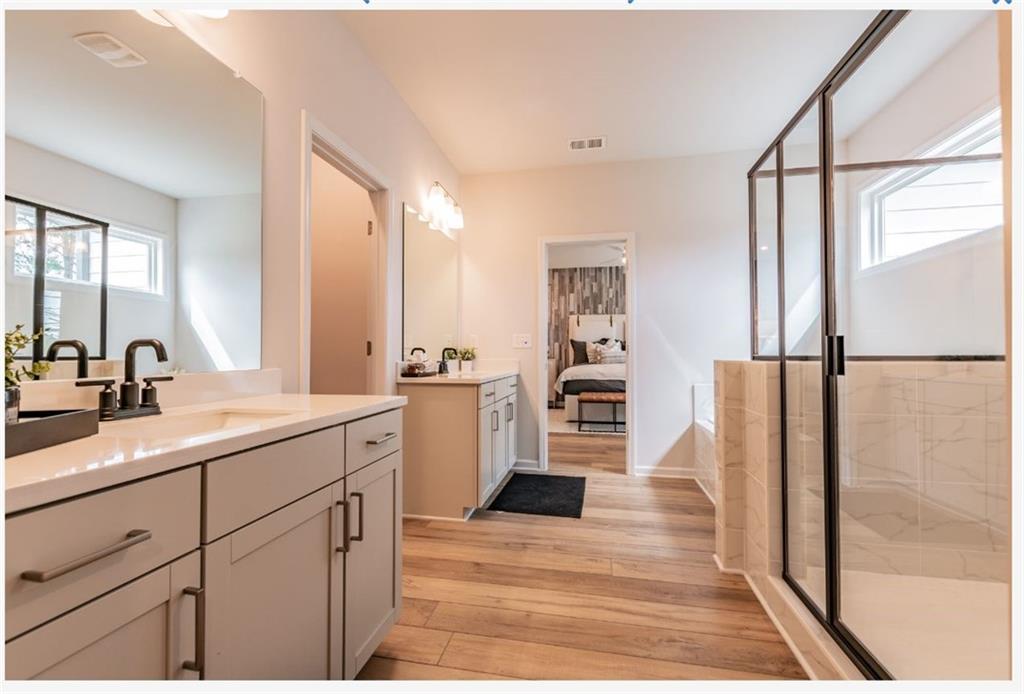 Grey Birch BASEMENT C4 4BR / 3.5 BA - As you step into the beautiful "Grey Birch Plan" on an unfinished daylight basement you are greeted by an open and airy foyer with 9 foot ceilings on the main floor where you will find a bedroom on the main and also a spacious great room, a gourmet kitchen large island, granite countertops, 36 inch painted white cabinetry, LVP flooring on the main floors, a generous sized walk in pantry, and stainless steel appliances. Enjoy outdoor entertaining on the 10X10 foot slab in your landscaped rear yard. The staircase with pine hand rail leads you to the top floor with an open loft, master bath will feature, double vanities, cultured marble counter tops, soaking tub with separate framed shower, and a spacious walk in closet. Just adjacent you will have 3 additional guest rooms and a guest bath with painted white cabinets, chrome faucets, and cultured marble countertops. This split floorplan assures for maximum privacy.